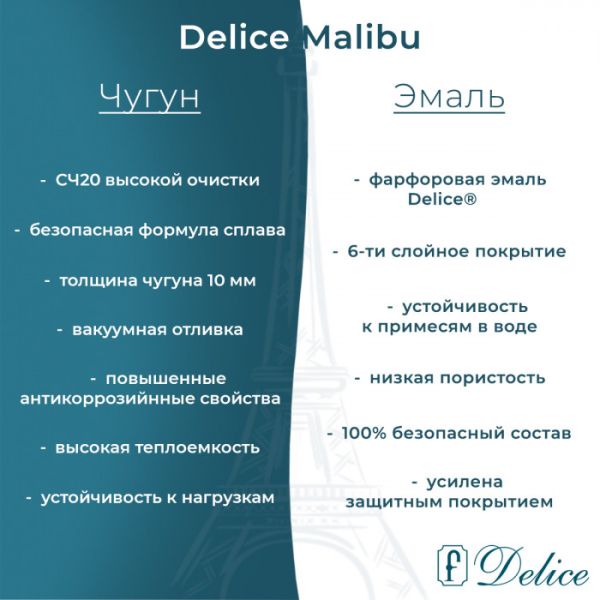 Ванна чугунная Delice Malibu DLR230607 170x75 купить
