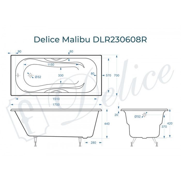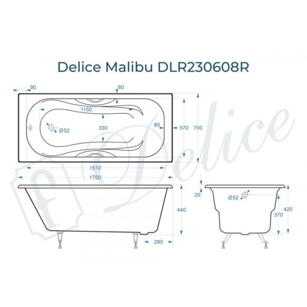 Ванна чугунная Delice Malibu DLR230608R 170x70 с отверстиями под ручки купить