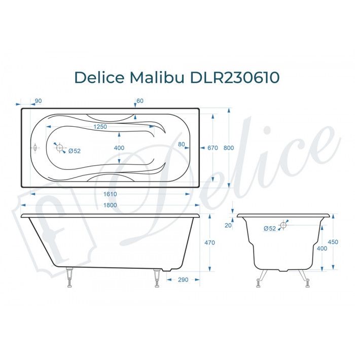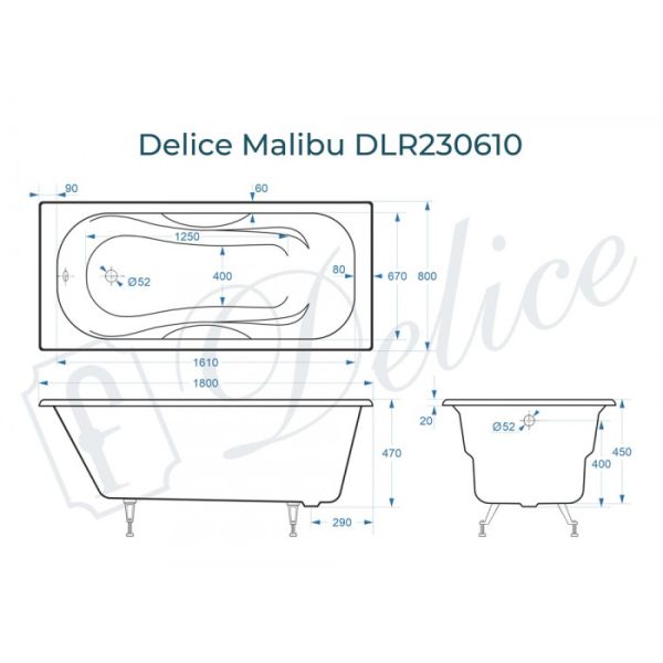 Ванна чугунная Delice Malibu DLR230610 180x80