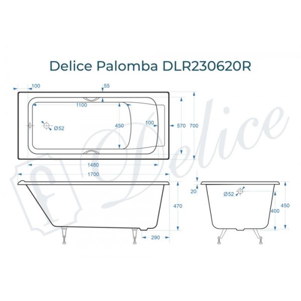 Ванна чугунная Delice Palomba DLR230620R 170х70 с отверстиями под ручки купить