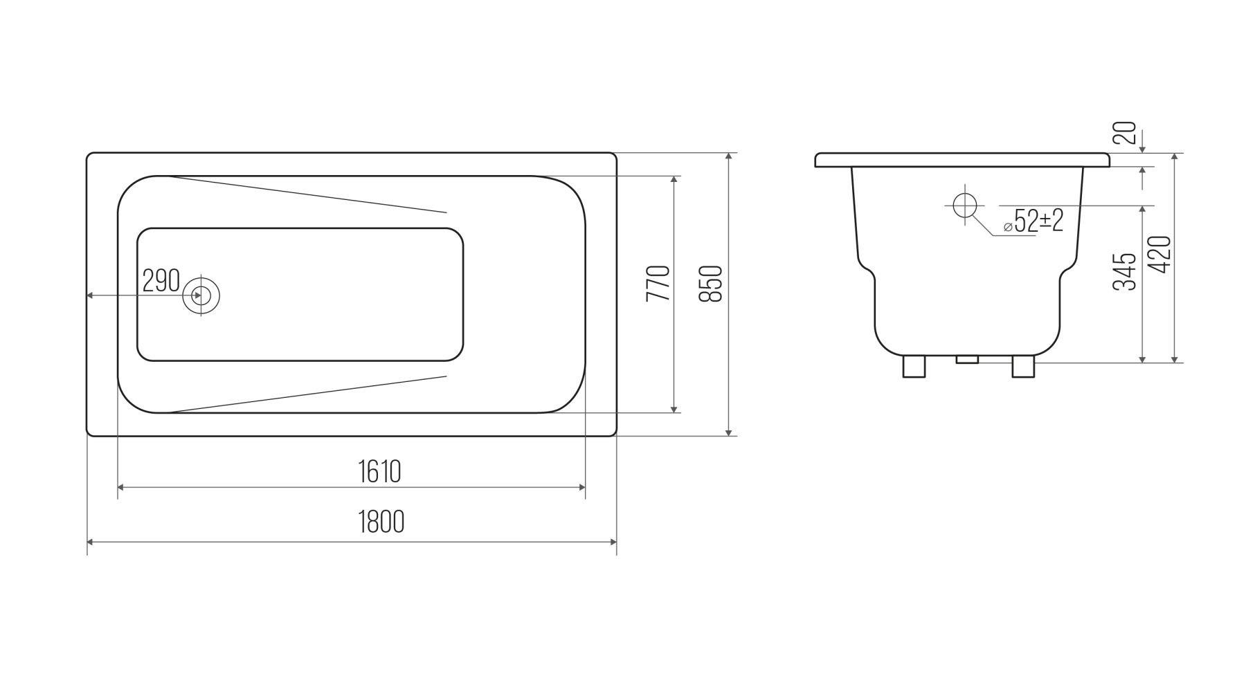 Ванна чугунная Goldman Art AT18085 180x85см с ножками купить