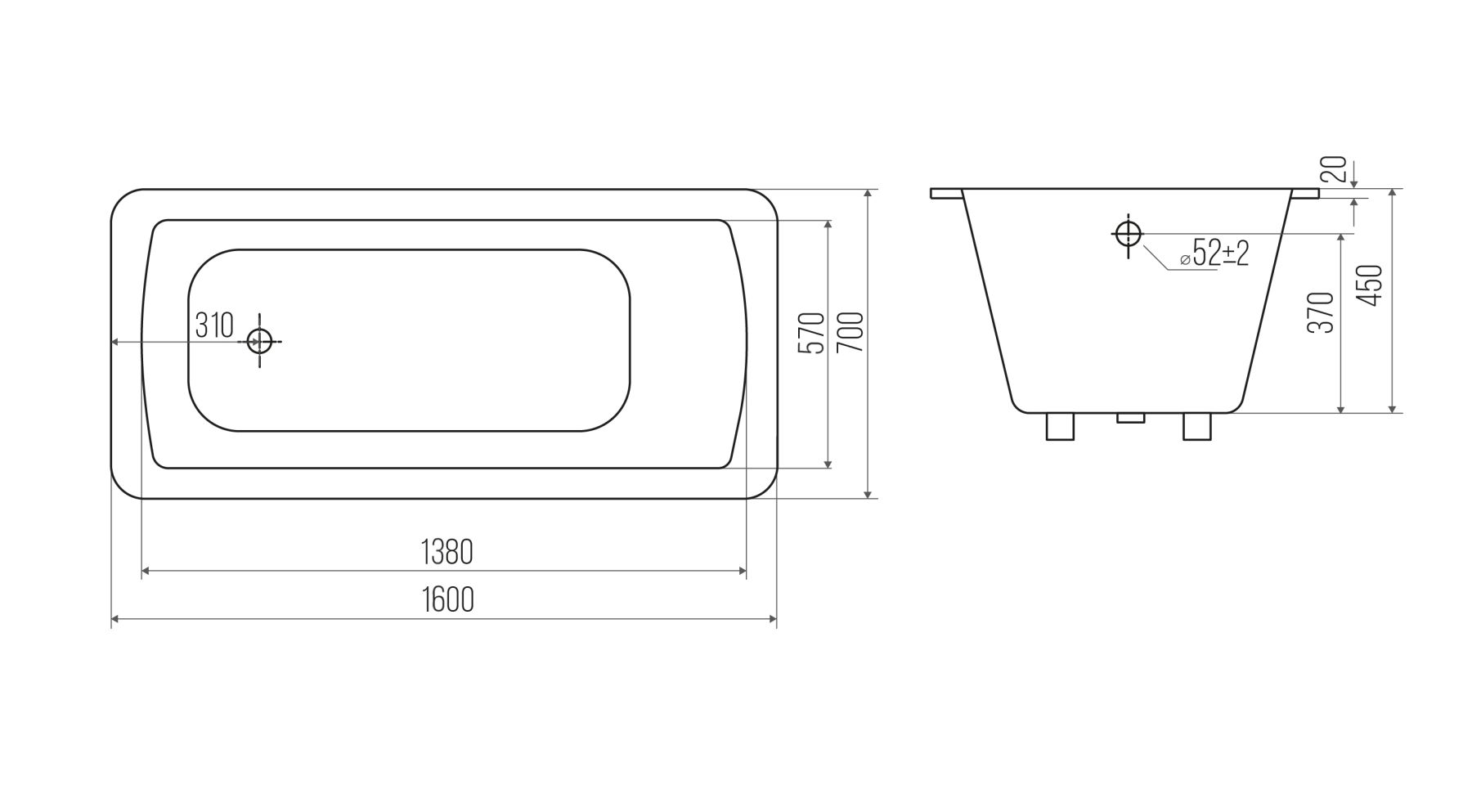 Стандартные размеры, см:160x70