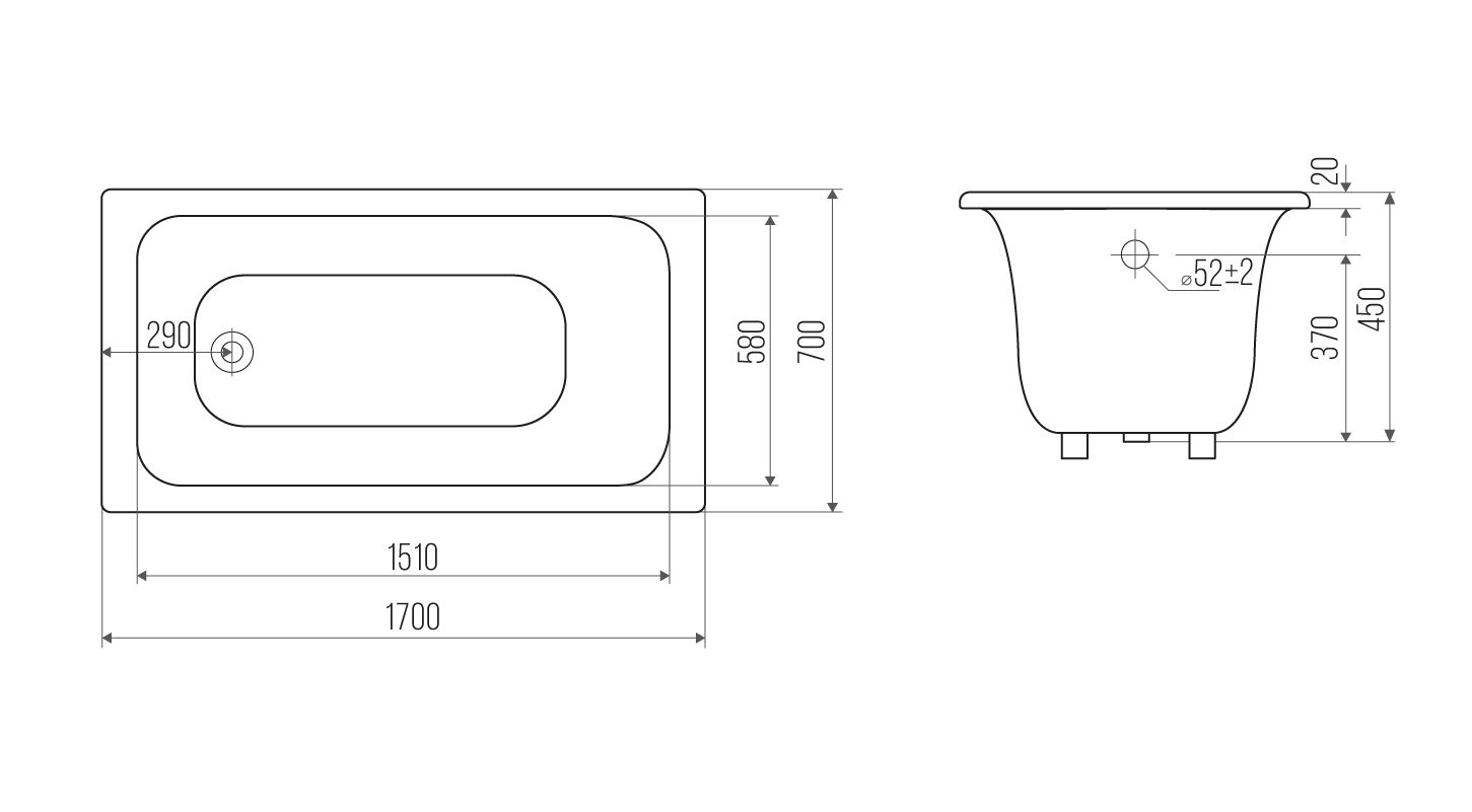 Ванна чугунная Goldman Real RL17070 170x70см с ножками
