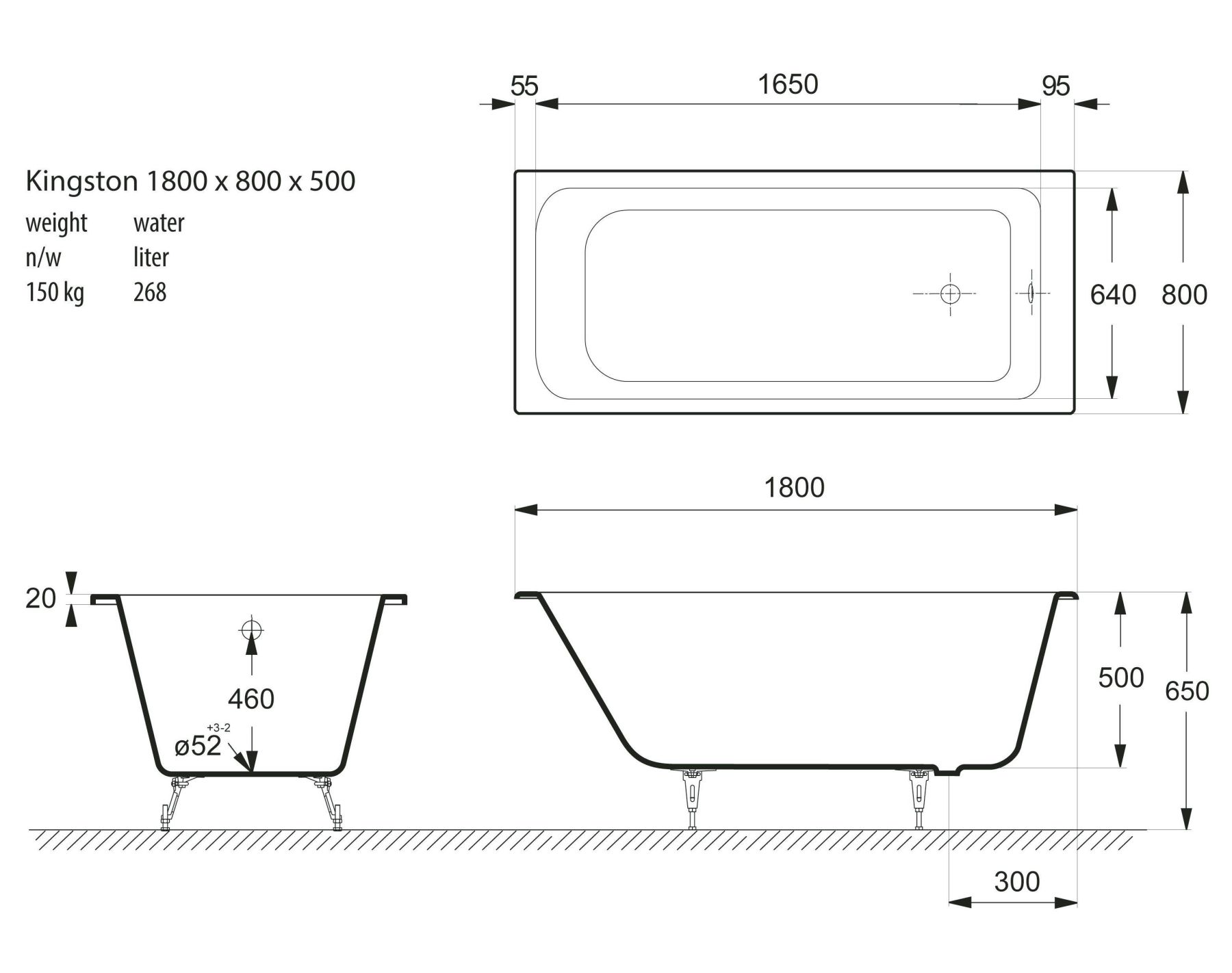 Общие характеристикиРазмер 180x80 Длина 180 см Ширина 80 см Глубина 50 см Высота на ножках 65 см Полезный объём 375 л Вес 165 кг Бренд Vinsent Veron 7 слёв титановой эмали класса 1А Цвет эмали белый Без антискользящего покрытия Диаметр слива Ø52 Расположение перелива стандартное