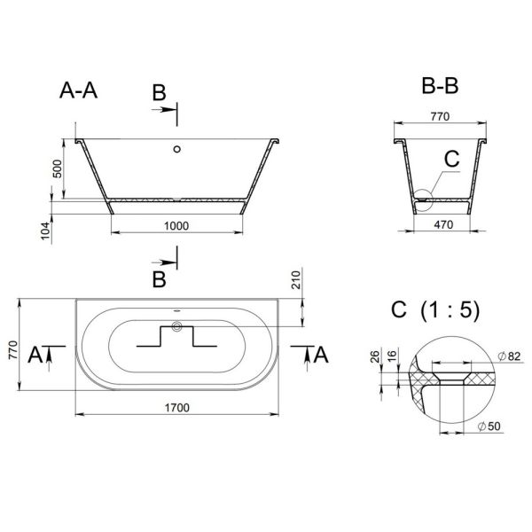 Ванна Holbi Galatea 170x77см белый матовый 1.01.003.11.1 купить