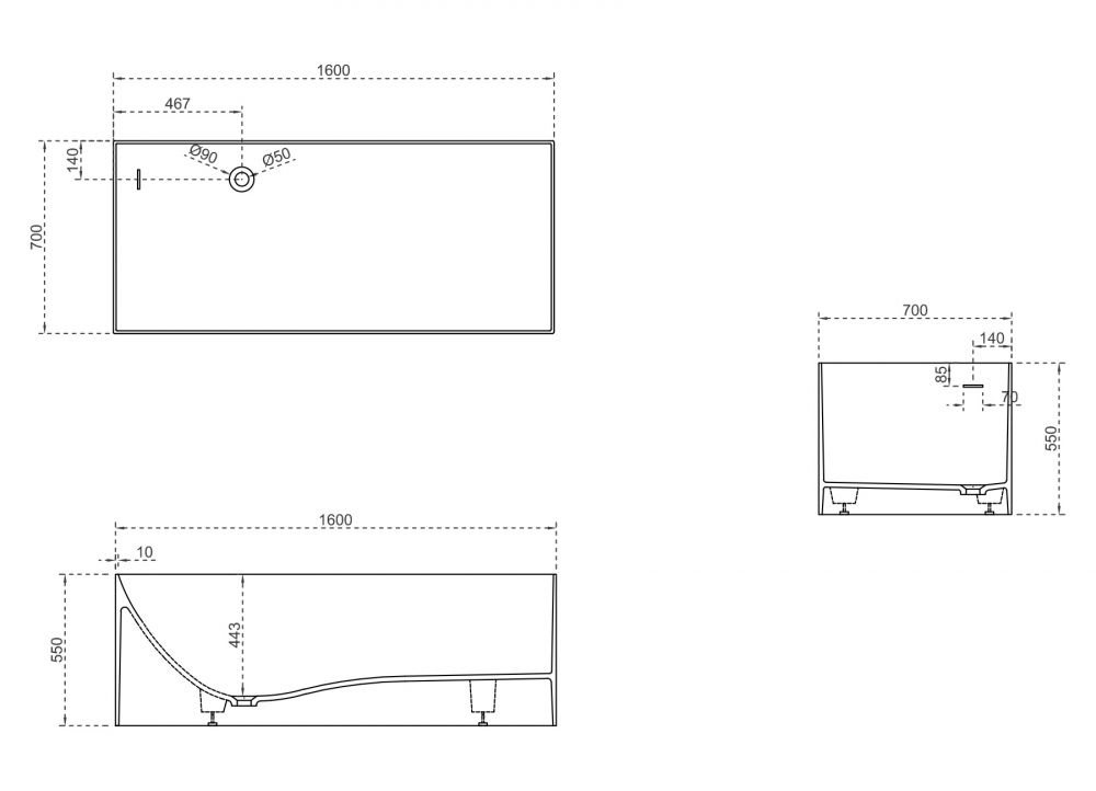 Ванна из искусственного камня ABBER Stein AS9640-1.6 160x70см белый матовый