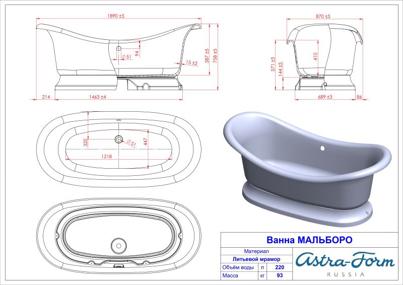 Элегантная ванна «Мальборо» создаст неповторимый изысканный стиль в вашей ванной ком... Подробнее