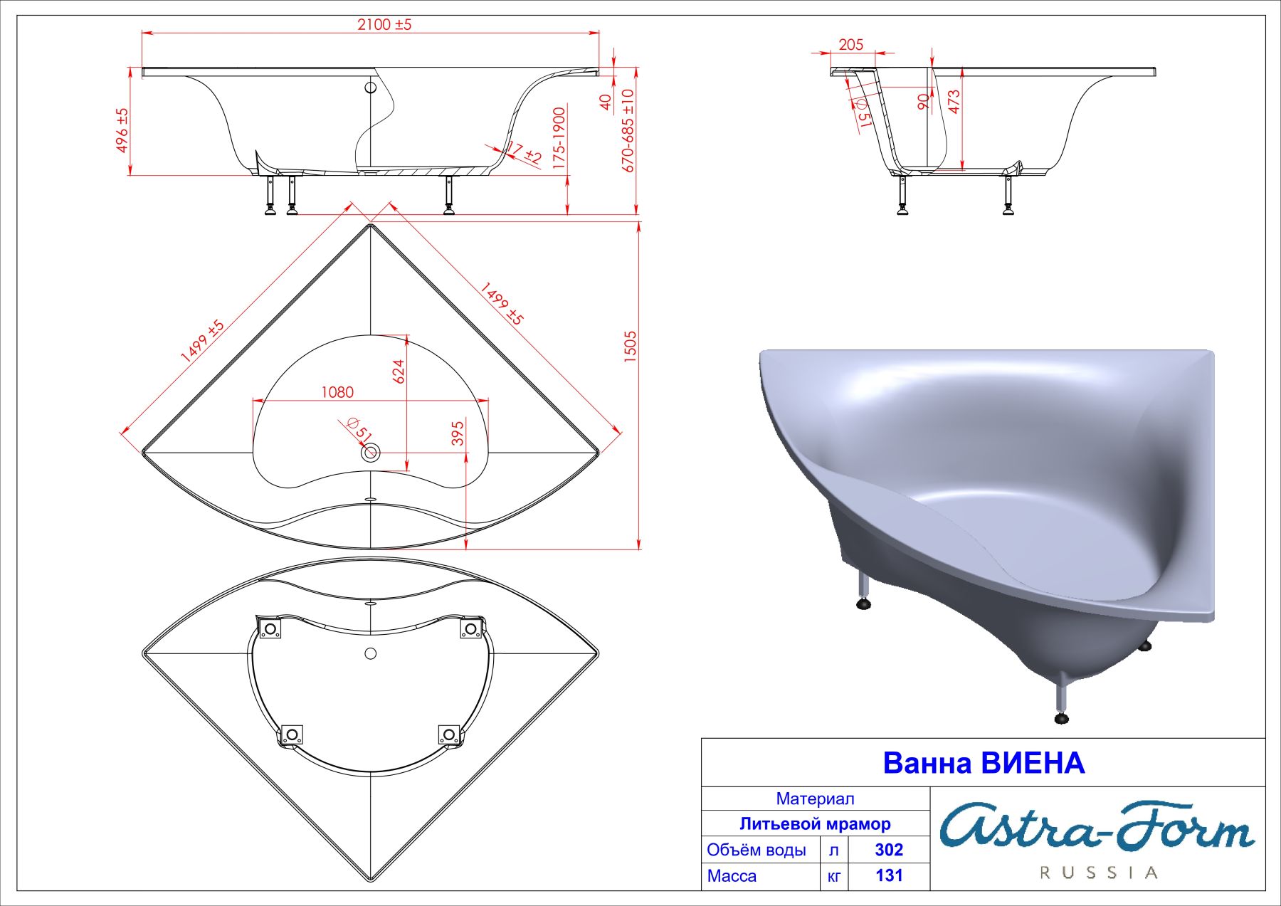 Ванна из искусственного камня Astra-Form Виена 01010022 150x150 см белый глянец
