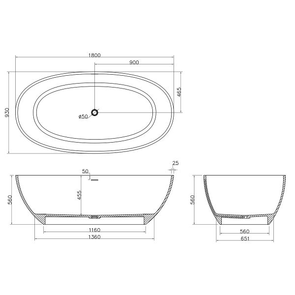 Ванна из искусственного камня Azario CHARTERS CHA18093S свободностоящая 1800х930х560