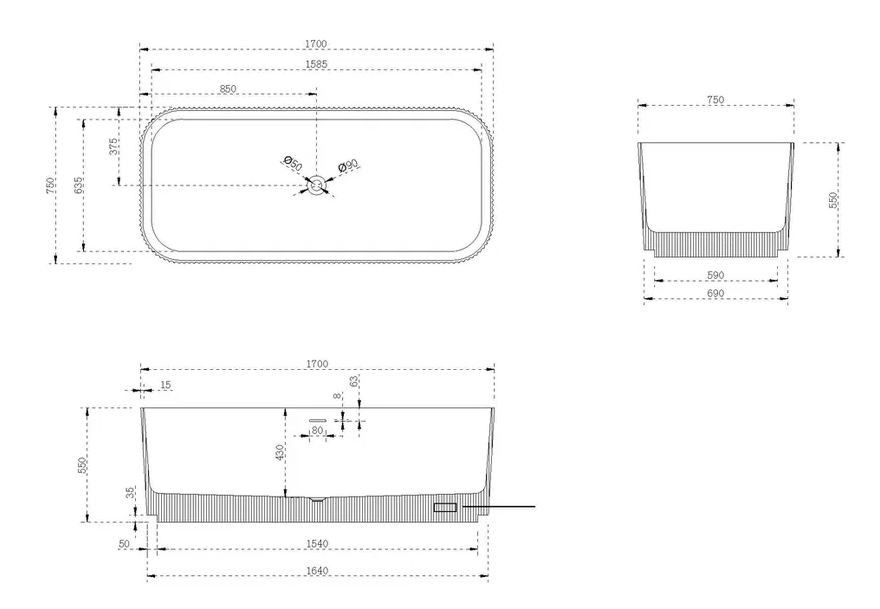 Ванна из искусственного камня NT Bagno Favoloso NT221 170x75см белый матовый