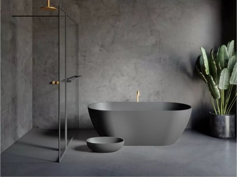 Цветная ванна из искусственного мрамора RIHO Bilbao 170х80, антрацит - композитная ванна, изготовленная из однородной каменной массы - каменная на ощупь, тёплая внутри. Это имитация мрамора: белый матовый цвет ванны при наполнении водой заиграет оригинальной текстурой камня.Твёрдая поверхность ванны устойчива к механическим повреждениям, гигиенична и химически нейтральна.
