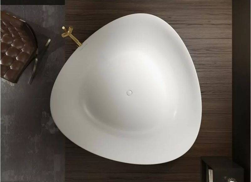 Эта просторная отдельно стоящая ванна RIHO Oviedo белого матового цвета - отличное решение для ванной комнаты отдыха. Чаша ванны в форме слегка закругленного треугольника изготовлена по технологии Solid Surface 2.0, которая позволяет получить сверхтонкие края. Большой формат 160 x 160 см позволяет с комфортом разместить двух человек в расслабляющей ванне. Ванна прекрасно сочетается с умывальником Ovideo из той же серии. Ванна Oviedo также доступна в двухцветном исполнении, где ее внешняя поверхность может быть окрашена в любой цвет из разнообразной палитры SIKKENS в глянцевом или матовом исполнении, а внутренняя поверхность останется матовой