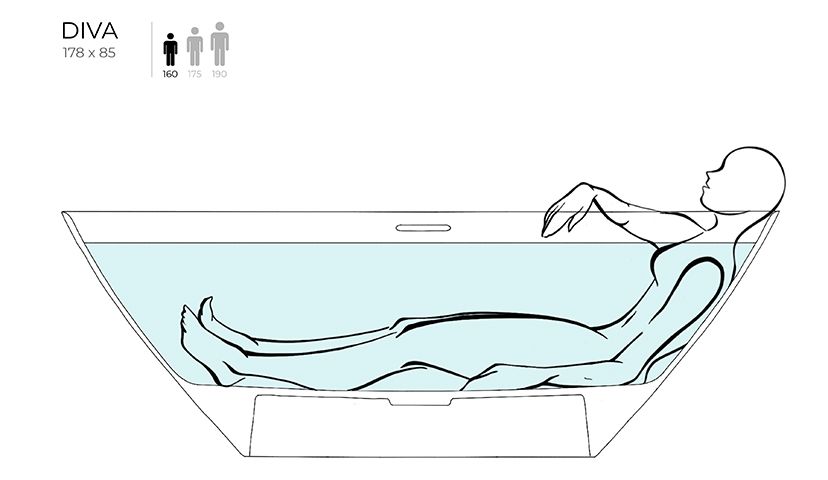 Ванна из искусственного камня Salini Diva S-Stone 102221MRH 178x85см RAL снаружи купить
