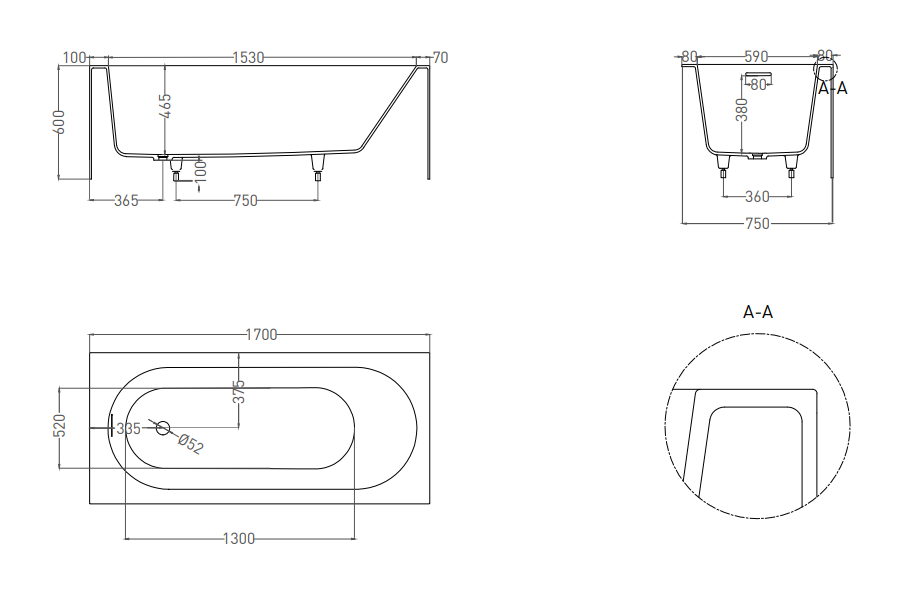 Ванна из искусственного камня Salini Fabia S-Sense 102611MRH 170x75см RAL снаружи