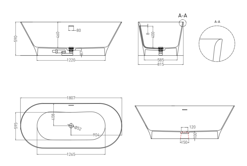 Ванна из искусственного камня Salini Mona S-Stone 102921MRF 180x80см RAL полностью