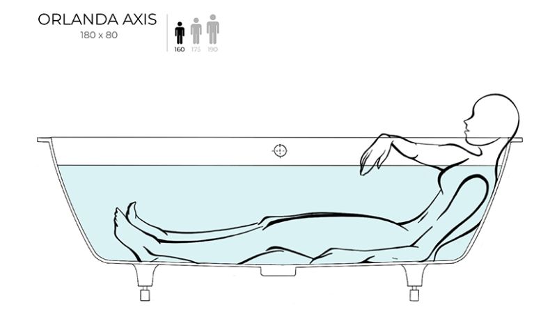 ORLANDA AXIS KIT 180 – универсальная ванна Salini из литого камня.Она предназначена как для полного или частичного встраивания, так и для любой установки — пристенной, угловой или отдельно стоящей. Ванна характеризуется одинаковым уклоном бортов и расположенными посередине сливом-переливом и донным клапаном. Название модели Axis («Ось») отражает характерную симметрию ванны во фронтальной проекции. Преимущества