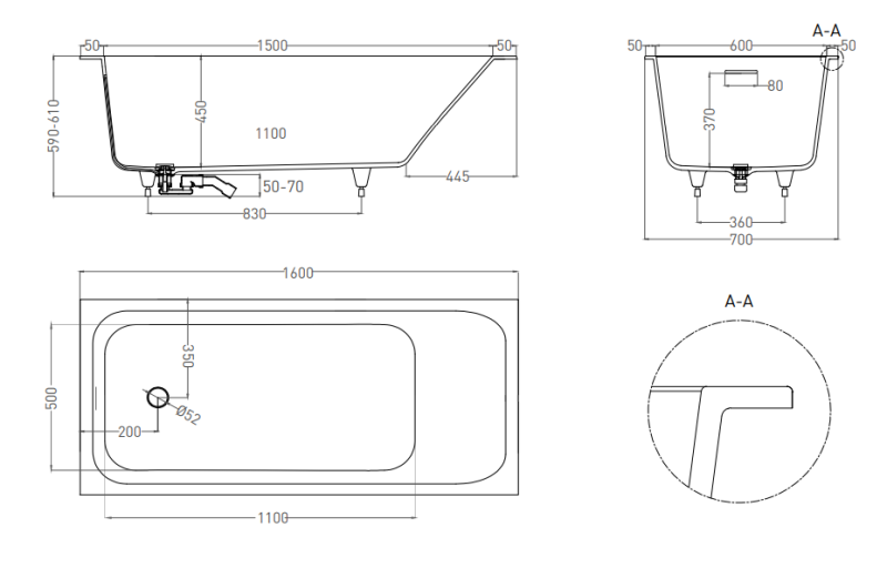 • Регулируемые ножки (ванна с экранами по высоте НЕ регулируется)
