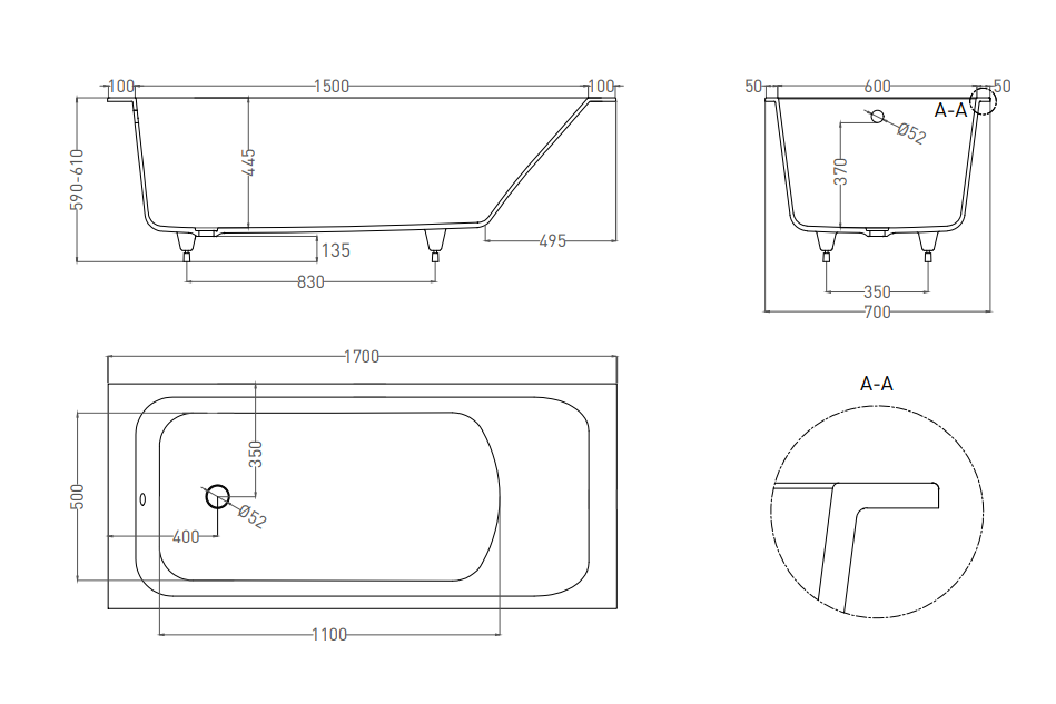 Ванна из искусственного камня Salini Orlanda S-Sense 102011MRF 170x70см RAL полностью