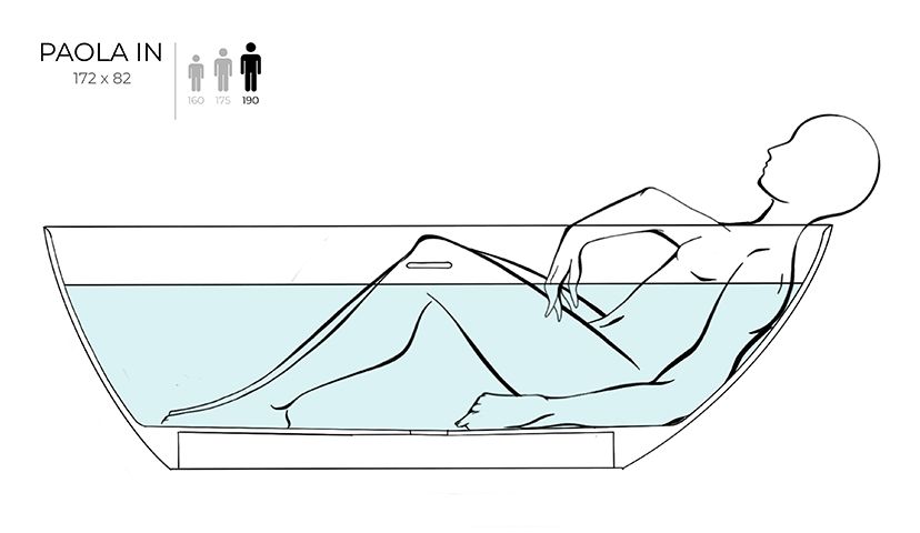 Ванна PAOLA — выбор настоящего гедониста. Нестандартный внешний вид ванны обусловлен её асимметрией — обе стороны достаточно разные, что позволяет расположиться как лёжа, так и сидя, при этом ощущая себя максимально комфортно.