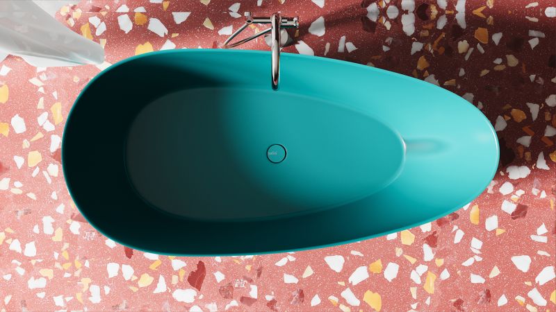 Необычный дизайн благоволит к смелым интерьерным решениям, особенно в сочетании с одноимённной раковиной-компаньоном, не только эффектной, но и практичной благодаря увеличенной глубине. Достаточно компактный размер ванны располагает просторным внутренним объёмом.