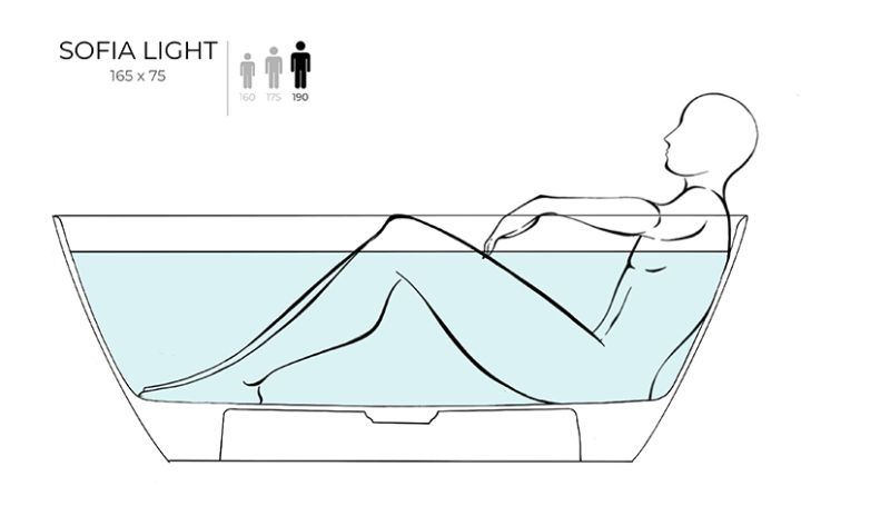 При габаритах 165х75 см SOFIA LIGHT будет идеальным вариантом как для больших, так и для маленьких ванных комнат, где одинаково важны чистые линии и повседневная практичность. Эта модель идеально подойдёт как для расположения у стены, так и для размещения в центре комнаты.