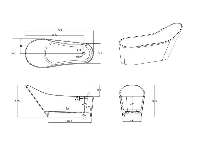Поверхность ванны приятная на ощупь и не холодная благодаря низкому уровню теплопроводности, что делает процесс эксплуатации очень приятным.