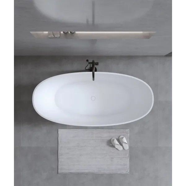 Поверхность ванны приятная на ощупь и не холодная благодаря низкому уровню теплопроводности, что делает процесс эксплуатации очень приятным.