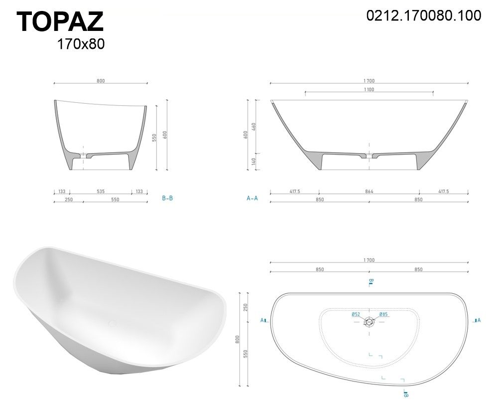 Ванна из искусственного камня Whitecross Topaz 0212.170080.200 170x80см белый матовый купить