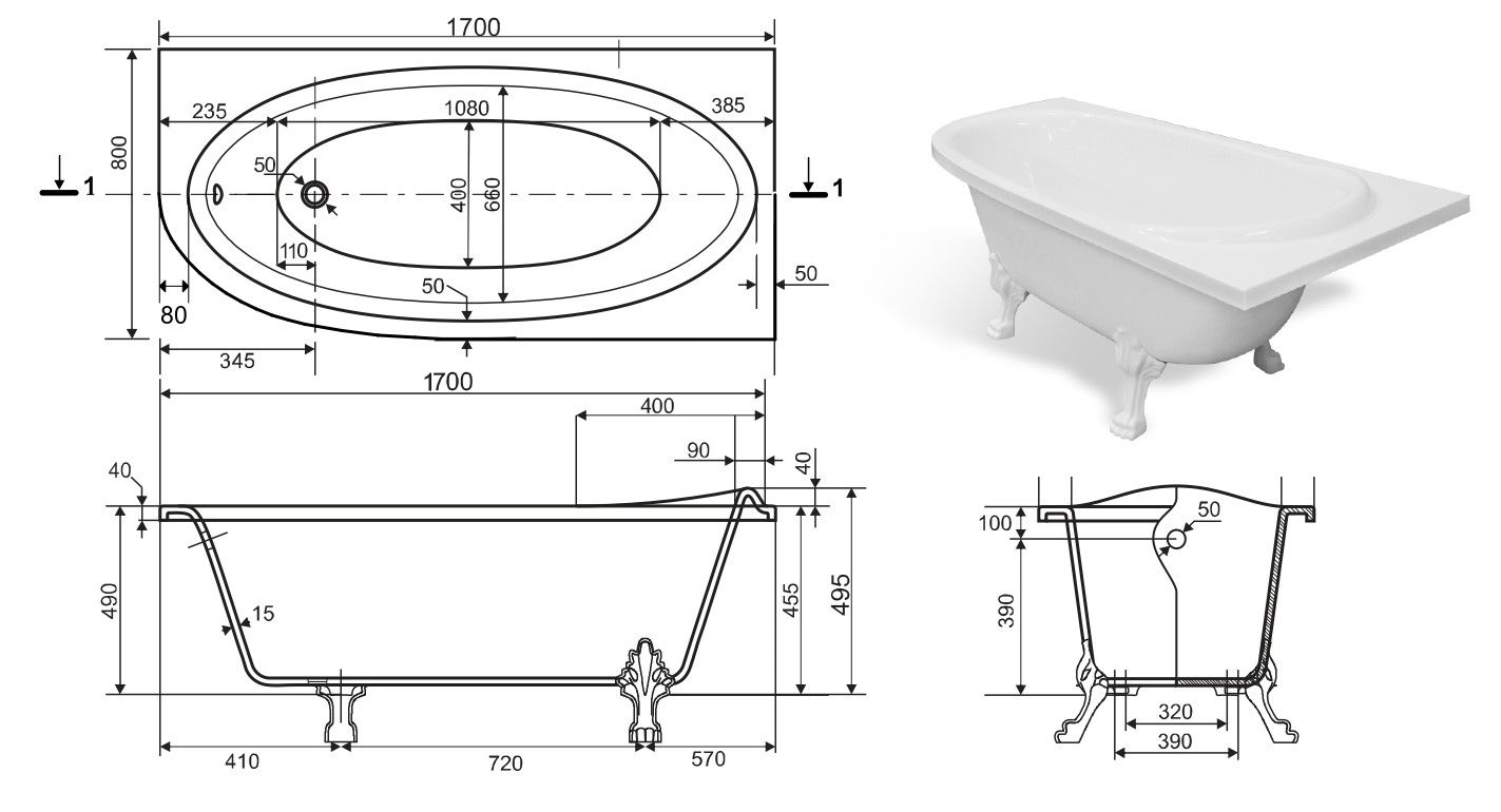Ванна из литьевого мрамора Эстет Венеция ФР-00002045 П 170x80см белый купить