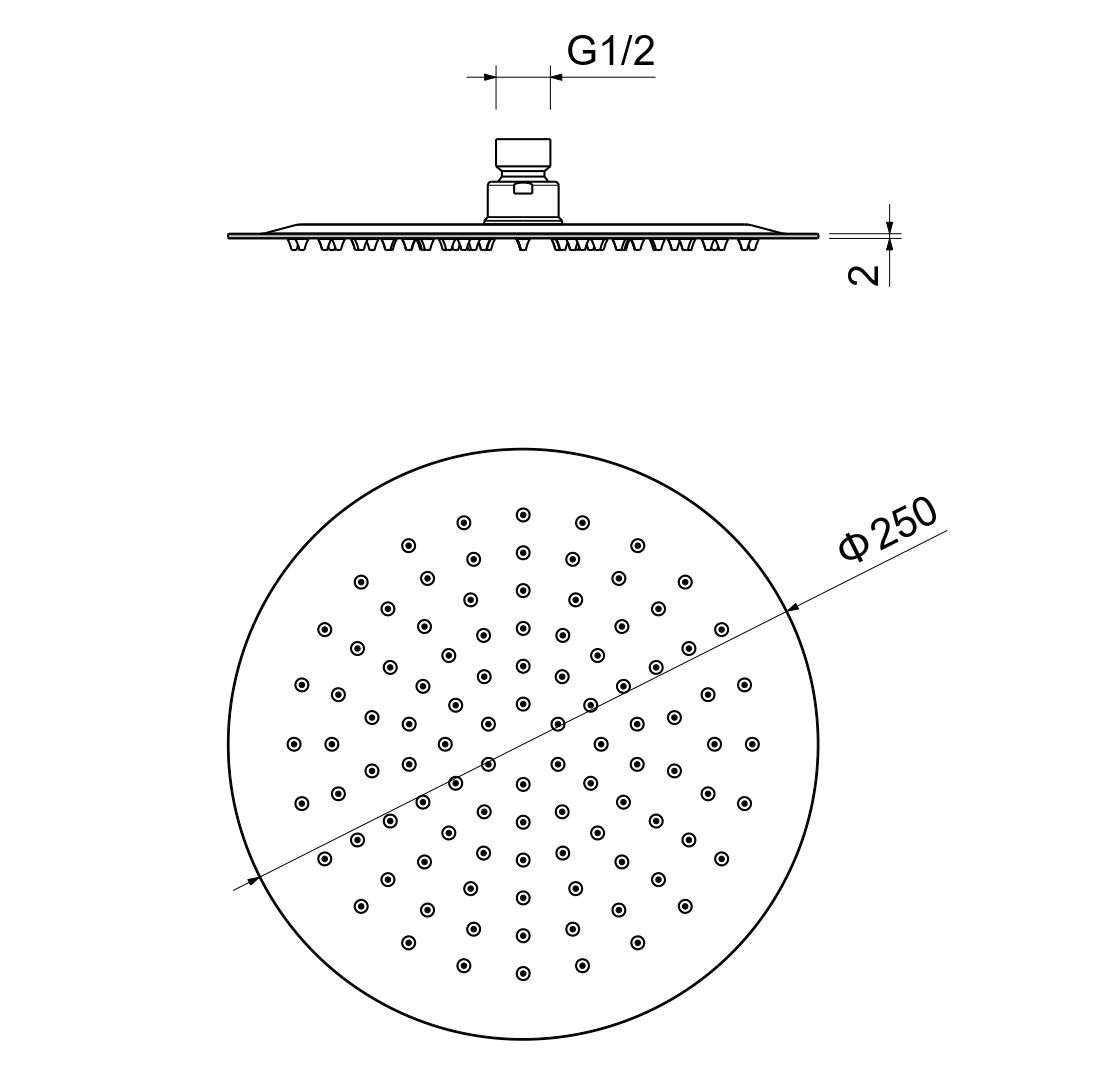 Верхний душ Aquatek AQ2073BGM 25 см шлифованный чёрный хром