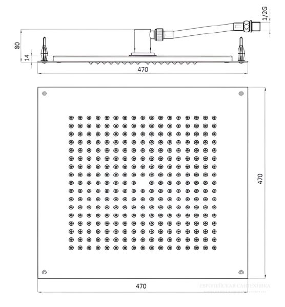 Верхний душ Bossini Dream Cube Flat H38459.073 47 см чёрный матовый купить