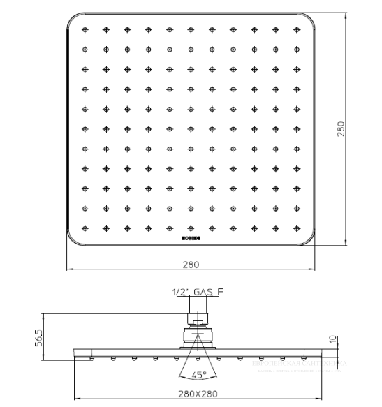 Размер верхнего душа, см:28