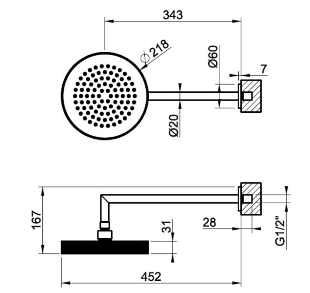 Размер верхнего душа, см:21.8