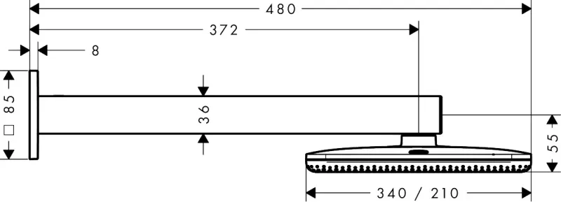 Размер верхнего душа, см:34