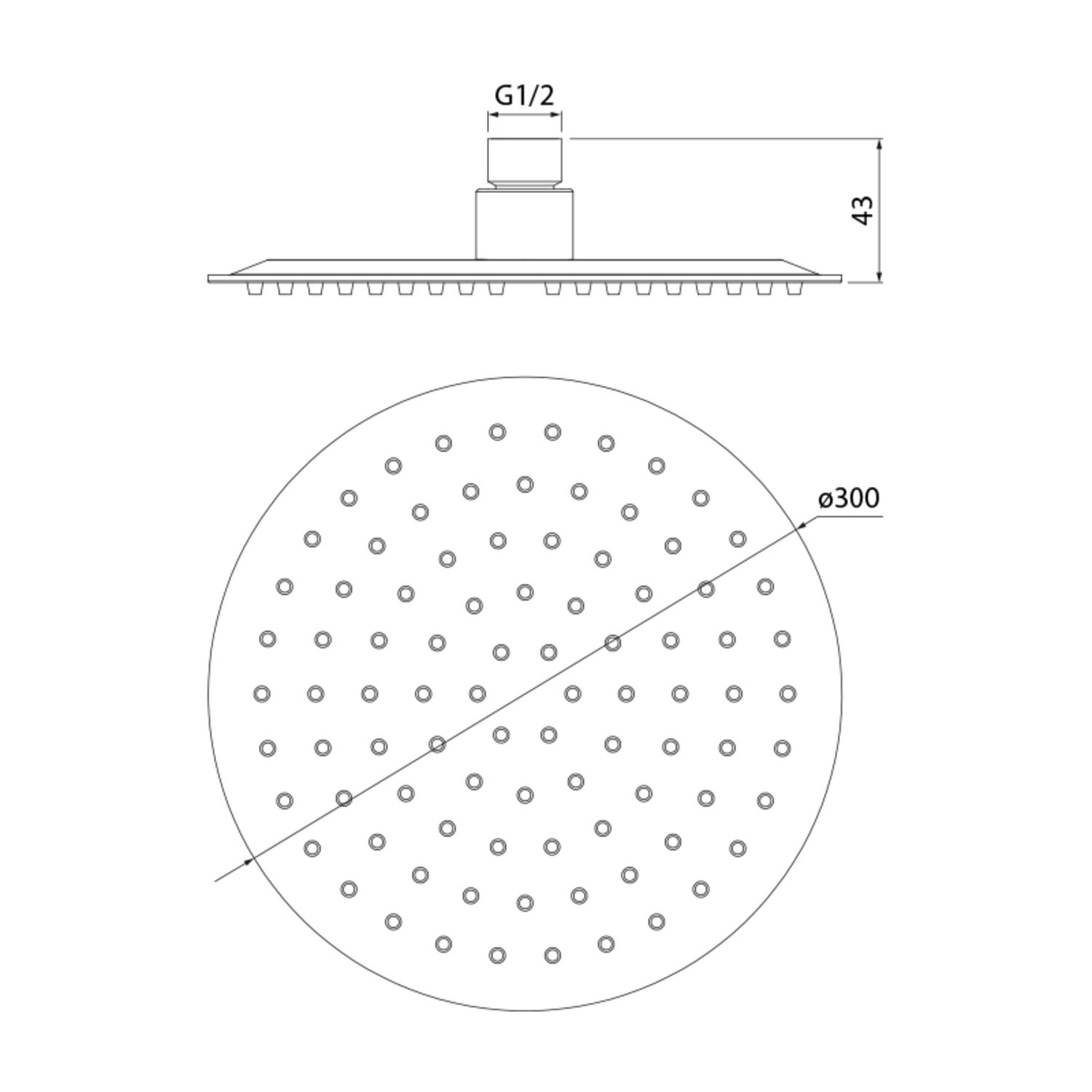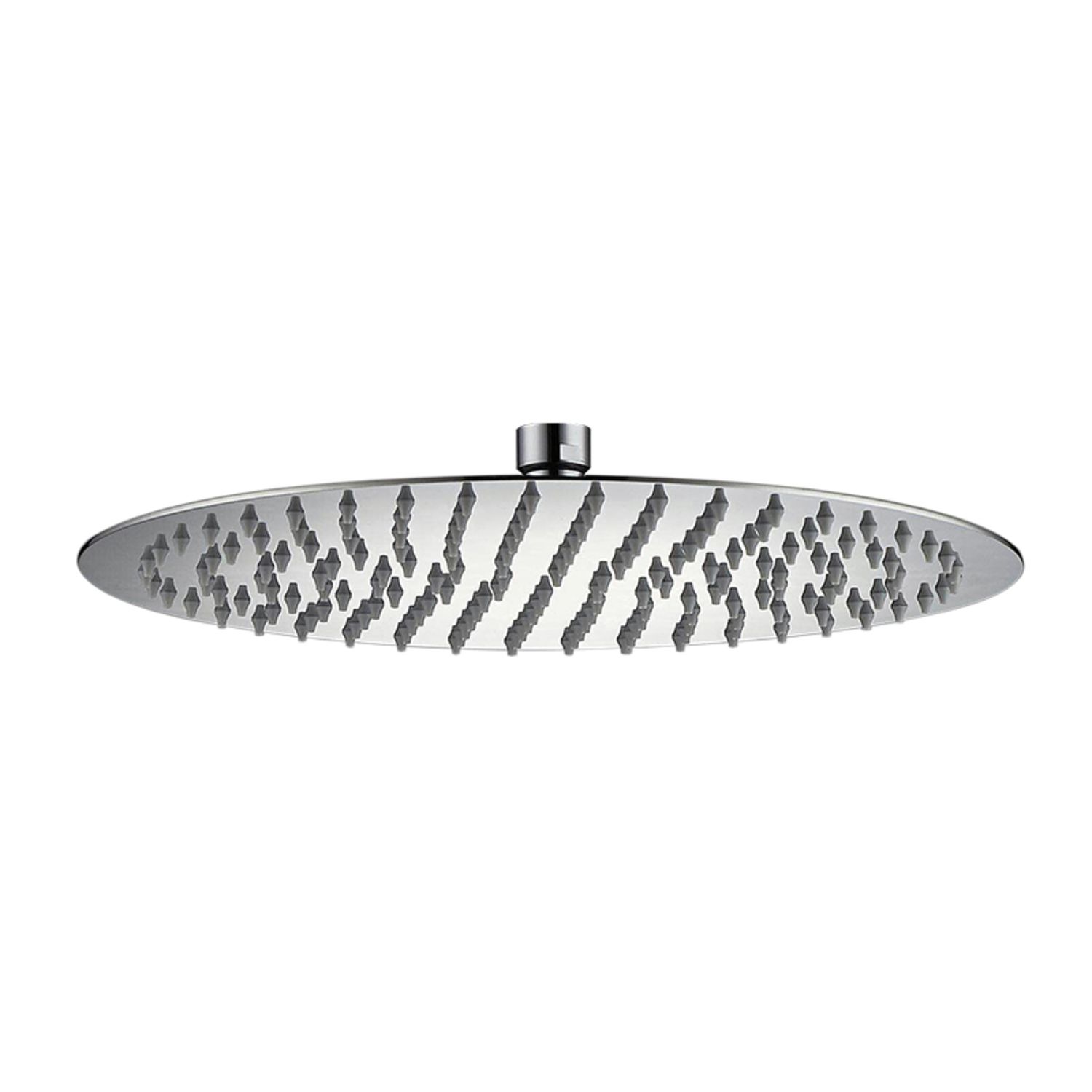 Душевая насадка верхняя, круглая, материал нержавеющая сталь (тонкая), диаметр 300 мм, темно-серые форсунки.