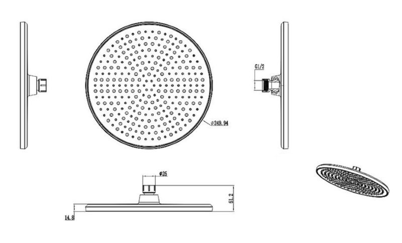 Тропический (верхний) душ Raglo R451.50.03.Цвет сатин золотой.Диаметр 250 мм.Материал пластик.