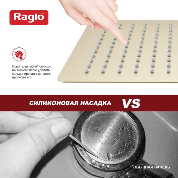 Тропический (верхний) душ Raglo R451.55.03. Цвет золотой сатин. Материал пластик. Форма квадратная. Размер душа 300*300*47 мм. Стандарт подводки 1/2".