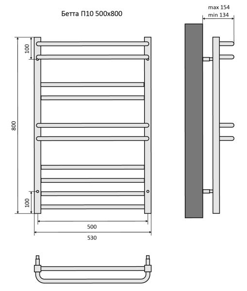 Полотенцесушитель водяной Aquatek (Акватек) Бетта П10 500х800 мм, подключение нижнее/диагональное, сверхпрочная пищевая нержавеющая сталь AISI 304L, гарантия 10 летХарактеристики: 30х30/18,без фитинговКомплектация:полотенцесушитель;