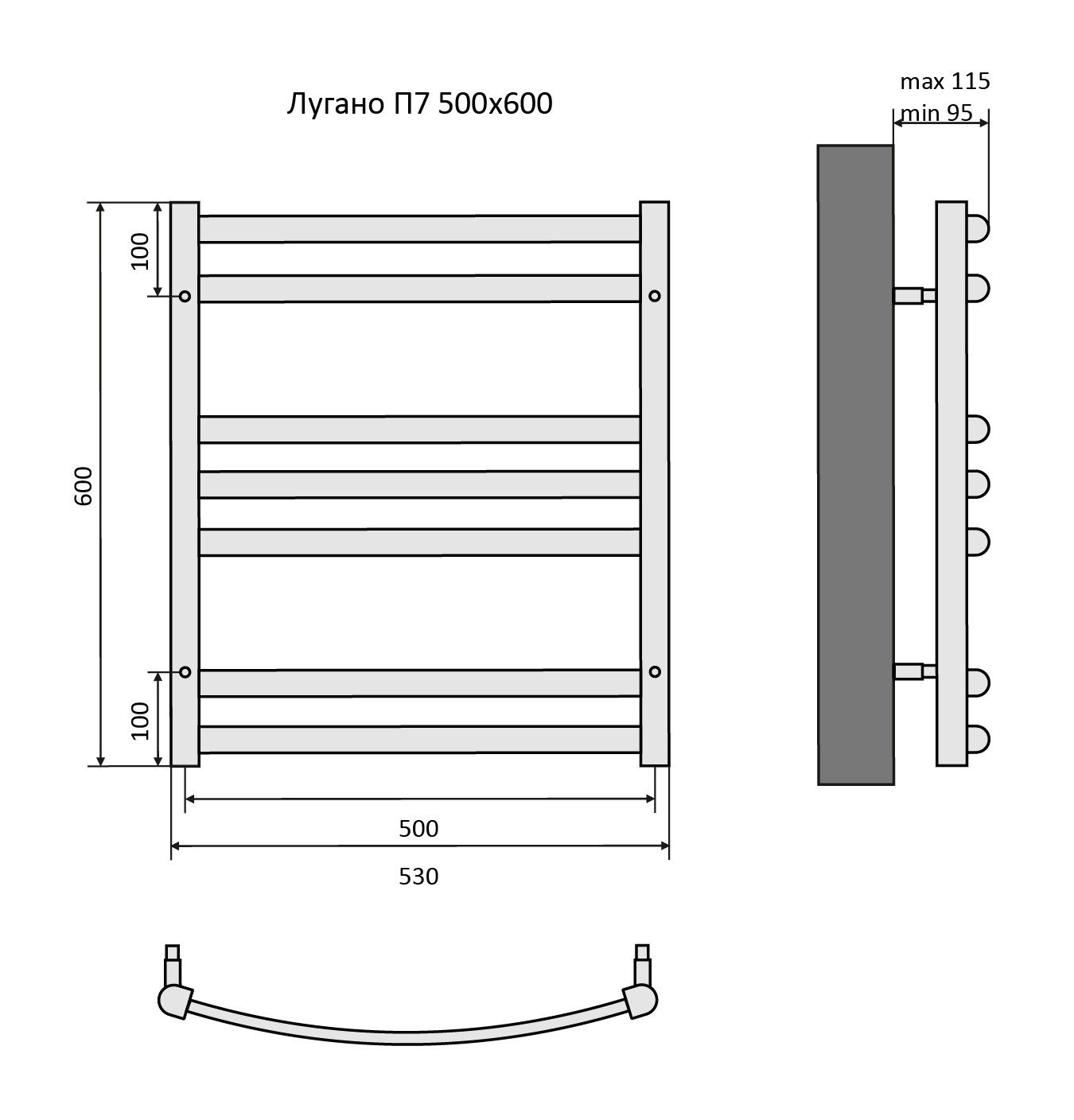 Водяной полотенцесушитель Aquatek Лугано AQ DOC0760BL П7 50x60см чёрный муар купить