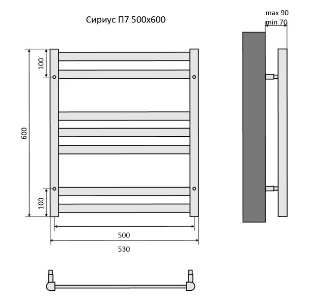 Водяной полотенцесушитель Aquatek Сириус AQ DP0760BL П7 50x60см чёрный муар купить