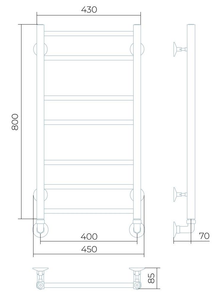 Полотенцесушитель изготовлен из нержавеющей стали — износостойкого и не подверженного коррозии материала, легко выдерживающего агрессивную среду систем отопления.