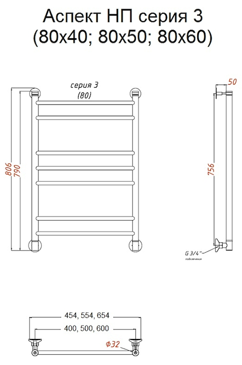 Водяной полотенцесушитель Тругор Аспект НП 3 80x50см хром Аспект3/нп8050
