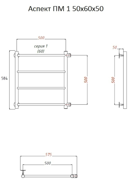 Водяной полотенцесушитель Тругор Аспект ПМ 1 50x60x50см хром Аспект1/ПМ506050