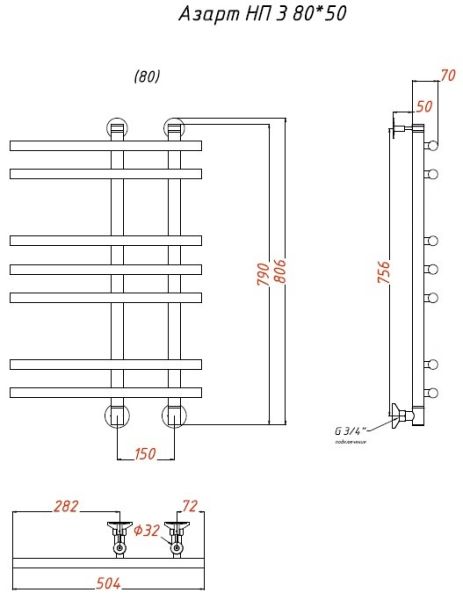 Водяной полотенцесушитель Тругор Азарт НП 3 80x50см хром Азарт3/нп8050