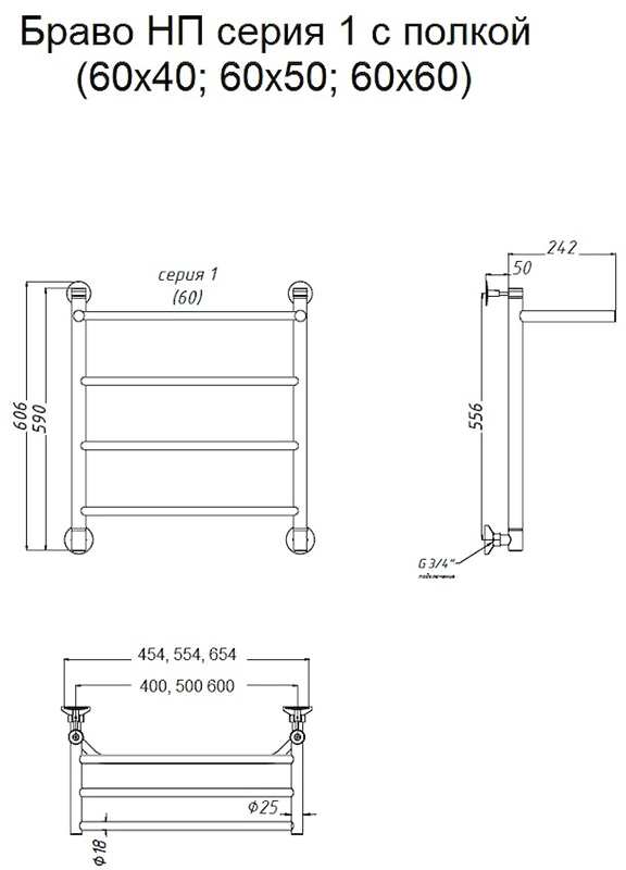 Водяной полотенцесушитель Тругор Браво НП 1 П с полкой 60x50см хром Браво1/нп6050П