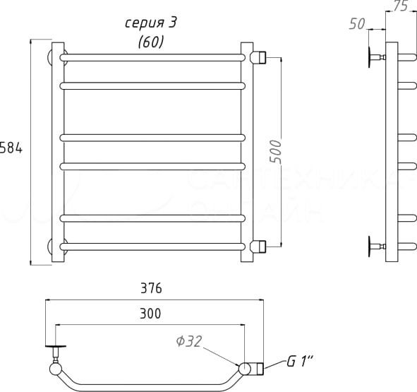 Водяной полотенцесушитель Тругор Браво ПМ 3 50x60x30см хром Браво3/ПМ506030