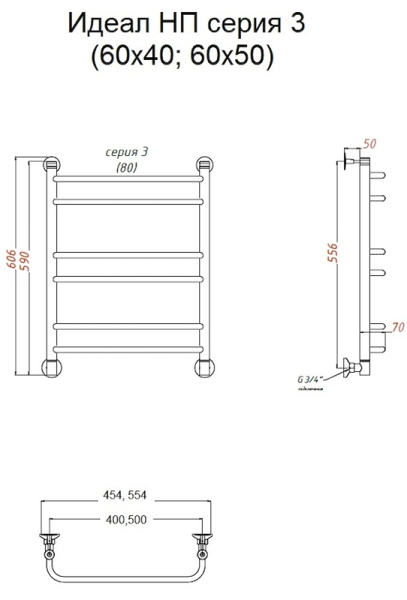 Водяной полотенцесушитель Тругор Идеал НП 3 60x50см хром Идеал3/нп6050