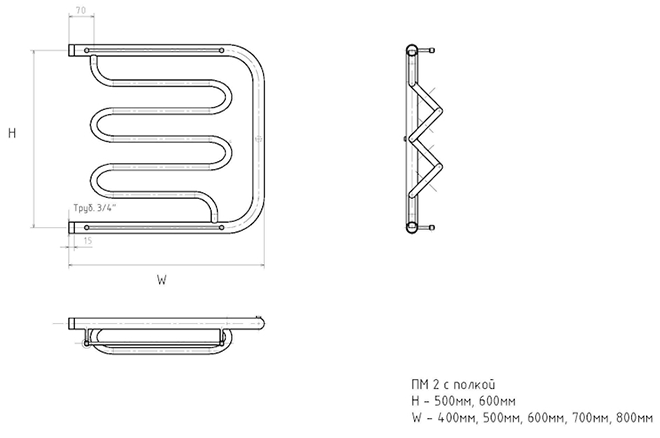 Водяной полотенцесушитель Тругор ПМ2 с полкой 50x80см хром ПМ2/5080П