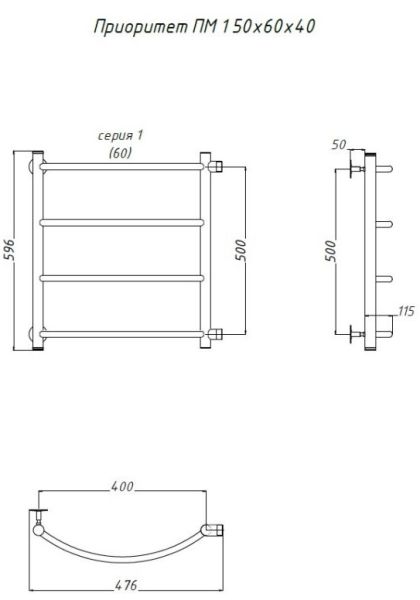 Водяной полотенцесушитель Тругор Приоритет ПМ 1 50x60x40см хром Приоритет1/пм506040