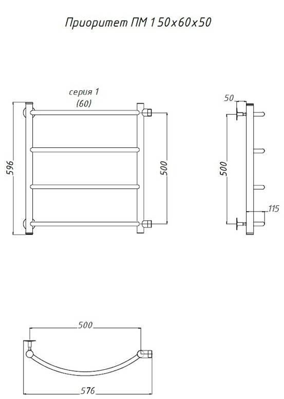 Водяной полотенцесушитель Тругор Приоритет ПМ 1 50x60x50см хром Приоритет1/ПМ506050